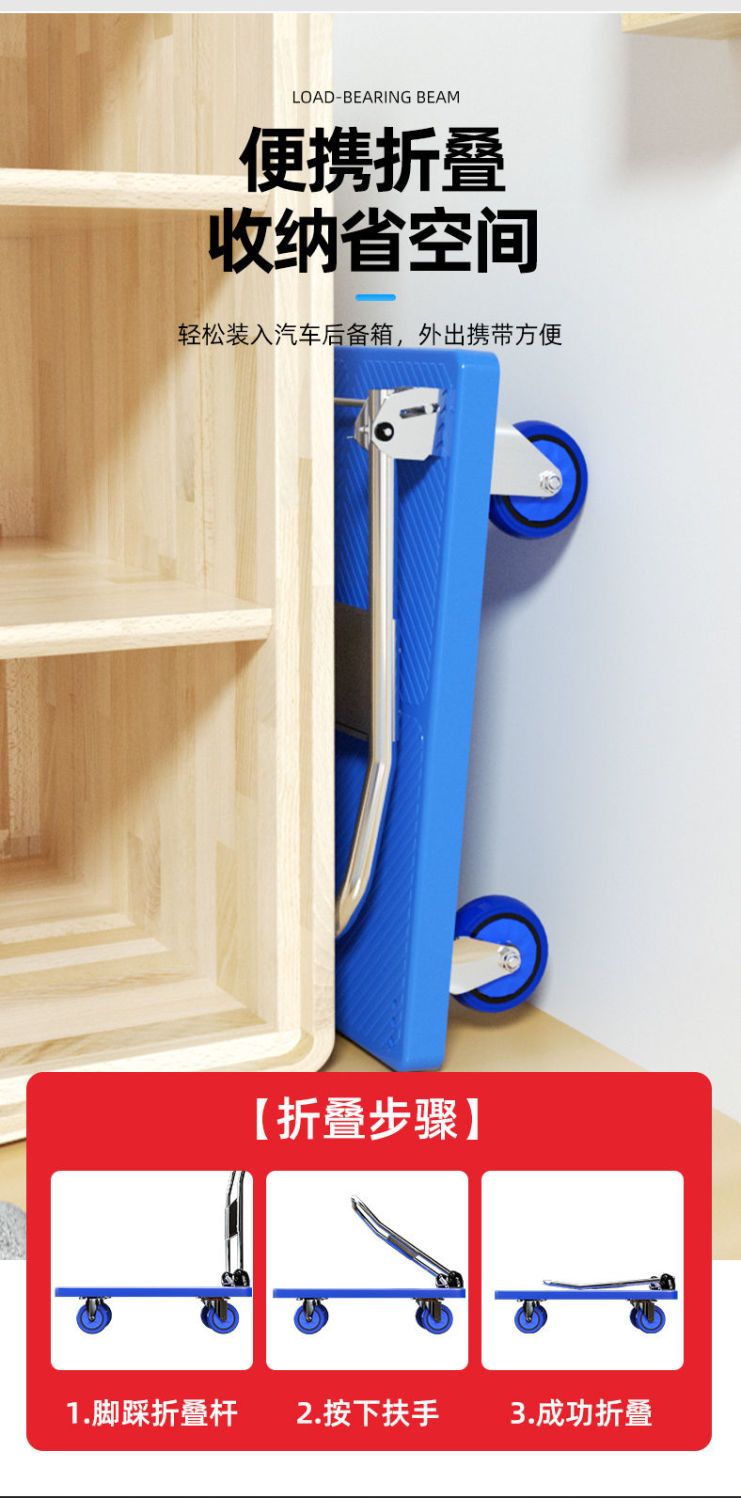 mixiang trolley, cargo trolley, transporter, flatbed truck, trailer, folding express trolley, portable shopping cart, collection order receipt reward 5 yuan +black 65 X40【 no installation required