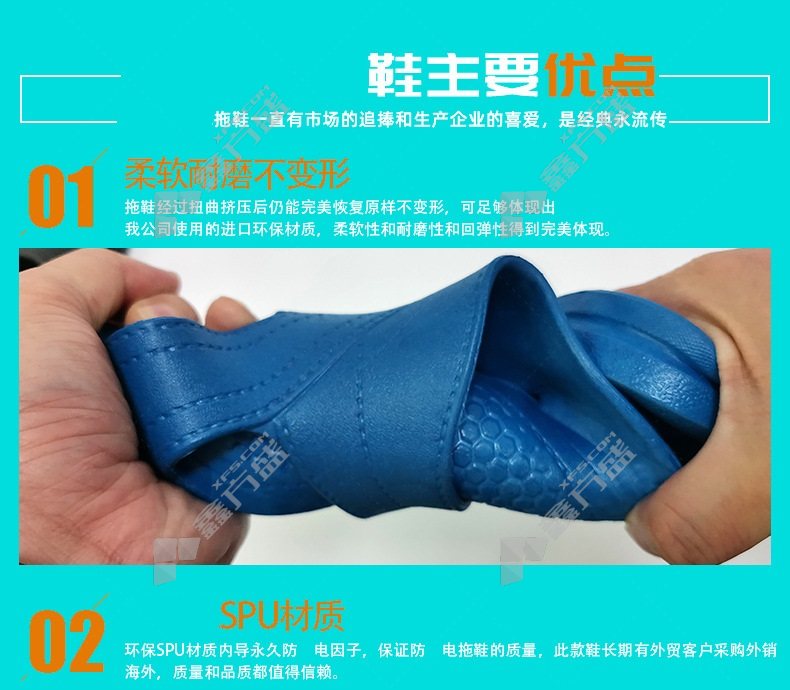 feinaisheng dust-free factory workshop SPU six-hole anti-slip slippers FNS-02756 46 code black FNS-02745/36code /blue