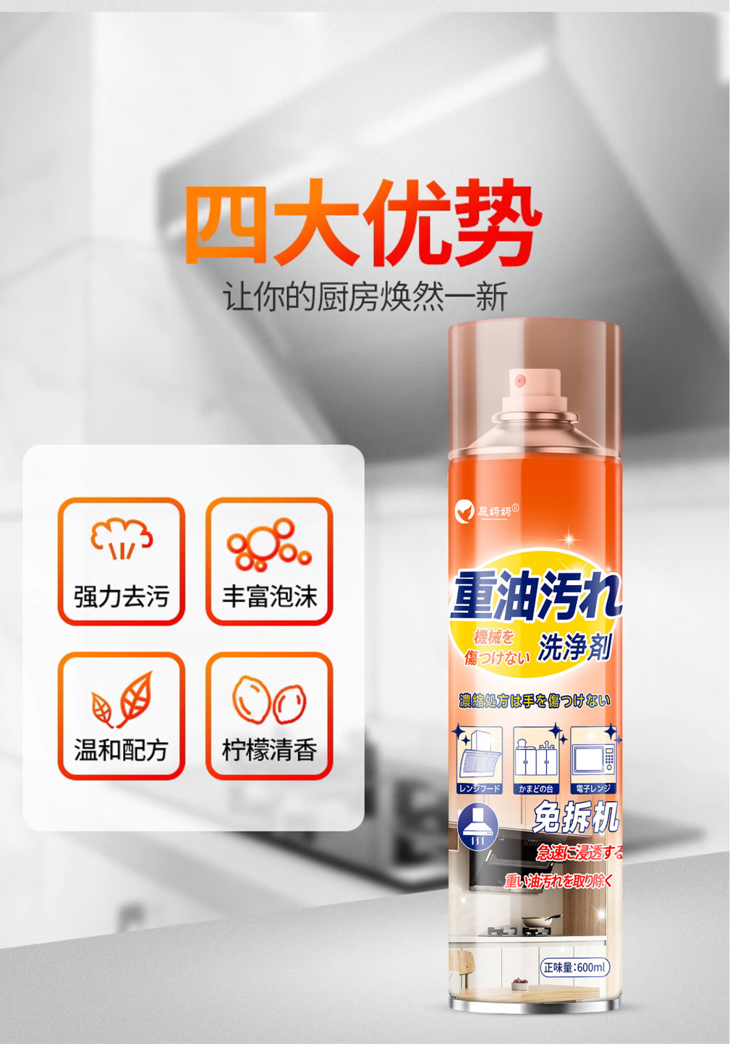 range hood cleaning agent degreasing cleaner strong oil fume cleaner kitchen heavy oil cleaner foam degreasing artifact brand: [chen mama] serve every family with heart +mom