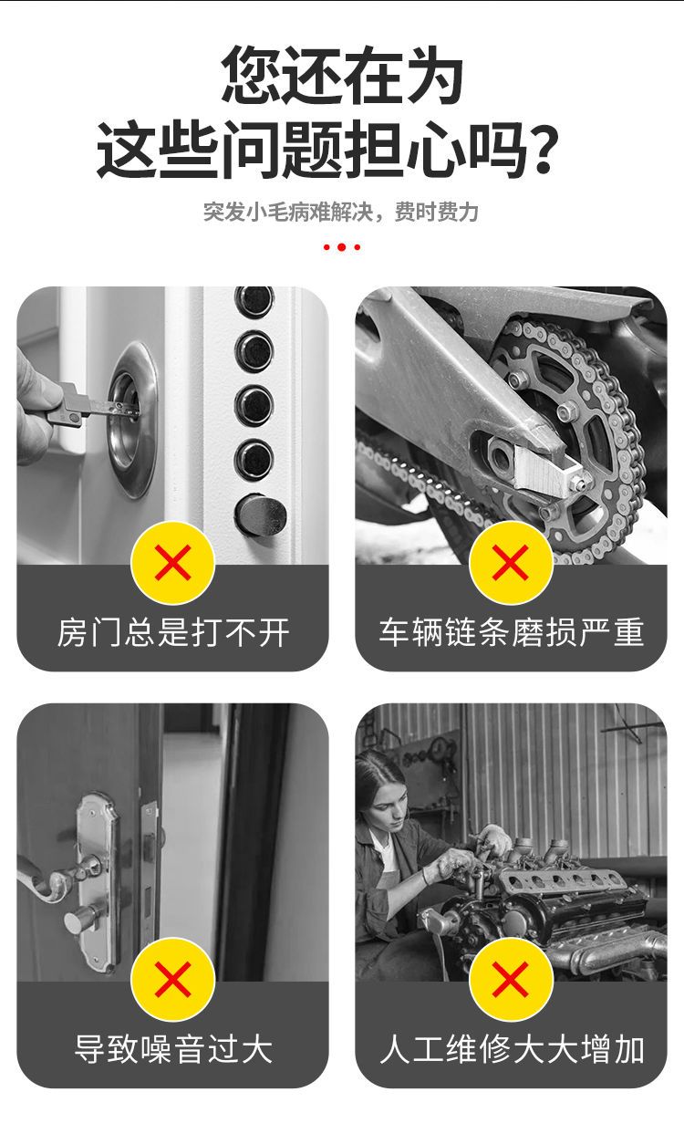 这个必须要重重点评!简直了!太棒了!视频里面可以听一听,这个门是最响的,才喷了一遍就已经改善太多了,拍完视频又喷了第二遍,完全无声了!这个绝对是好东西!真的灵!推荐!!我今天早上收到立马就喷,需要喷的地方多,还差点迟到哈哈哈