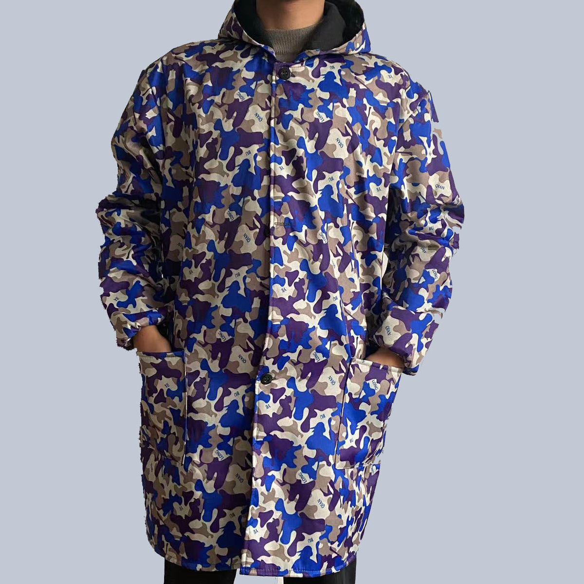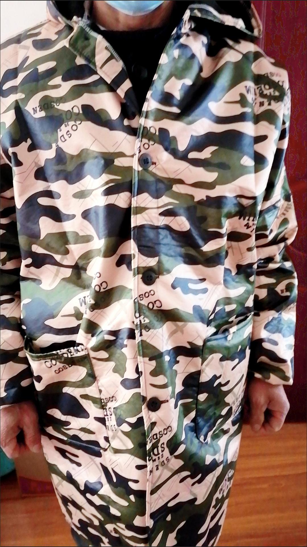衣服宽大,保嗳。穿上身舒服,防水防油很好。