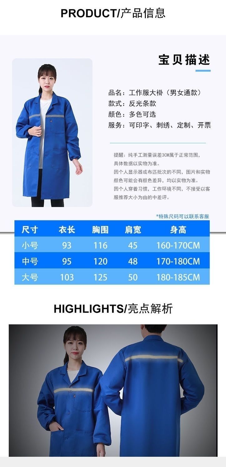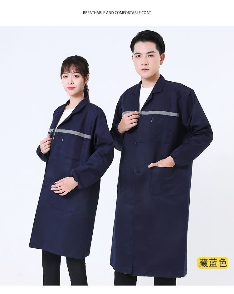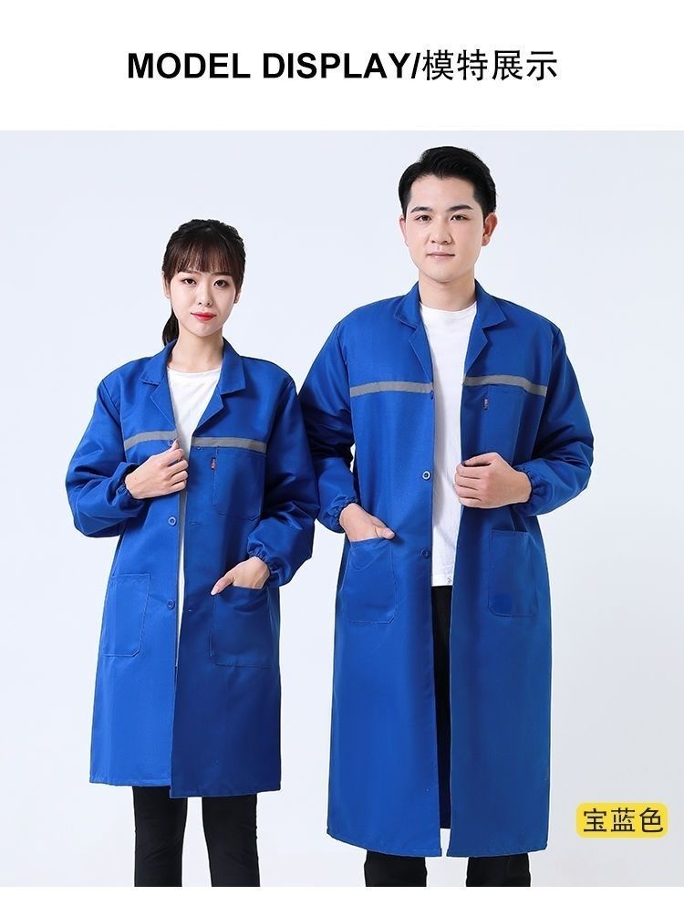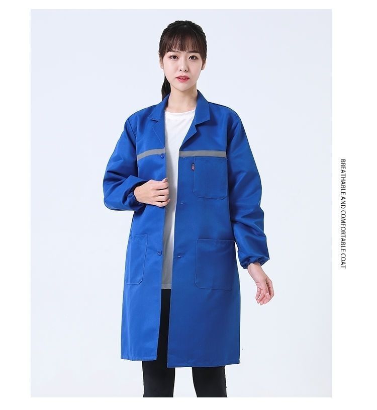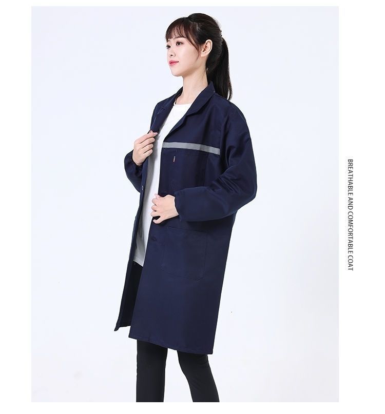 work clothes coat, wear-resistant and dirt-resistant long blue coat for men and women warehouse management, breeding and handling, labor protection, work, dust-proof coat, reflective strips, thickened version (blue) +small size (height 155-