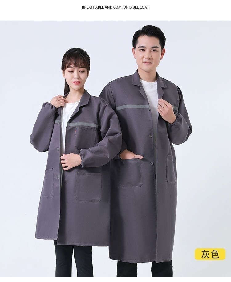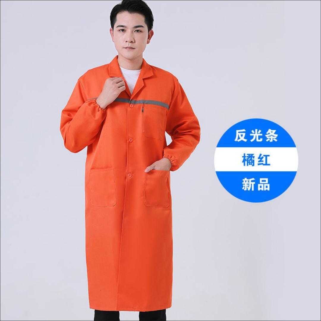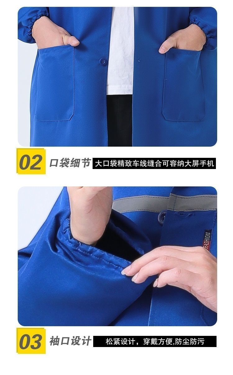 work clothes coat, wear-resistant and dirt-resistant long blue coat for men and women warehouse management, breeding and handling, labor protection, work, dust-proof coat, reflective strips, thickened version (blue) +small size (height 155-