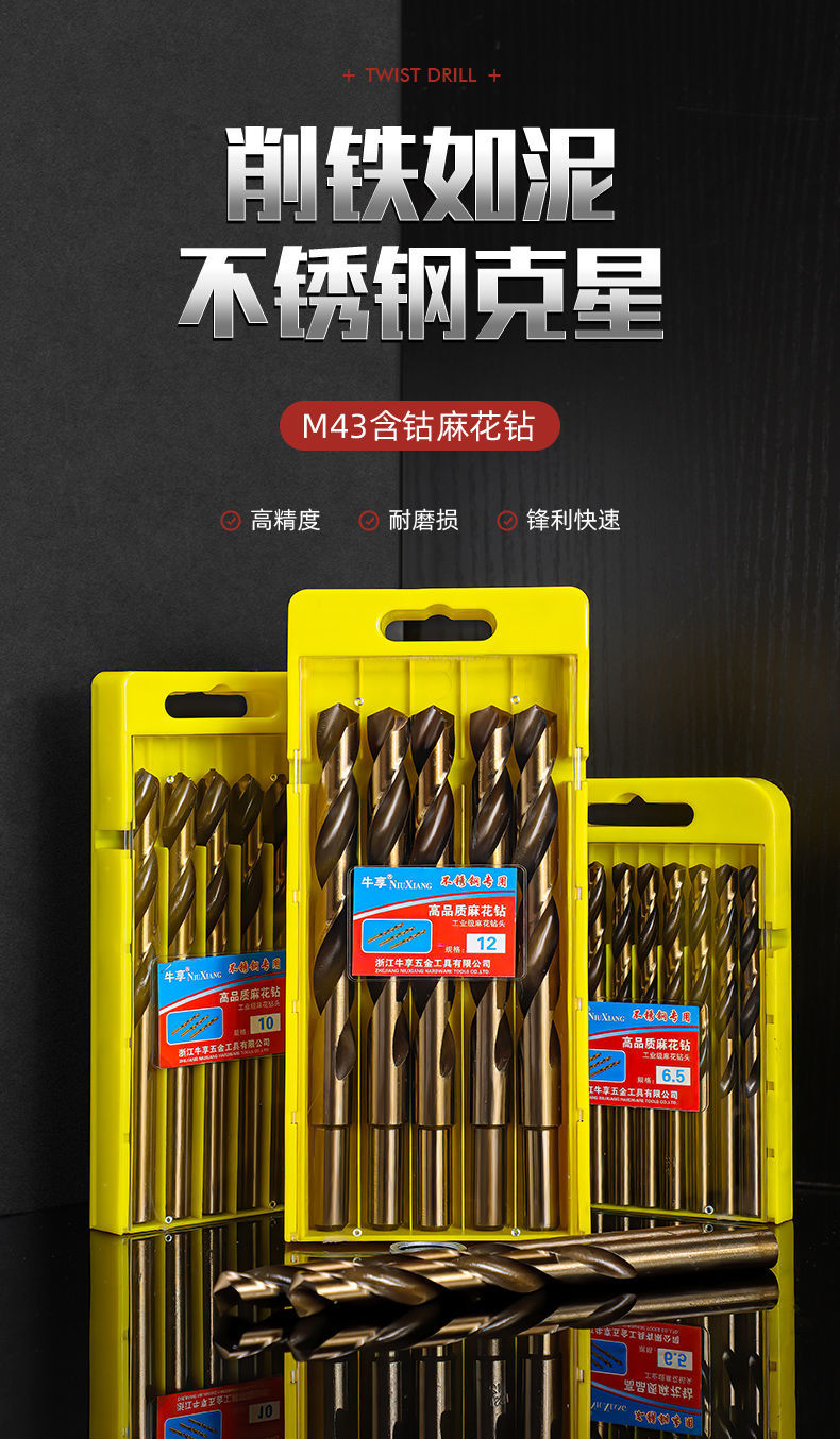 twist drill bit M43 cobalt-containing rotary drill stainless steel special punching drill metal drill iron alloy straight handle 1-14 mmM43 cobalt drill bits [3 +4+5】1 each