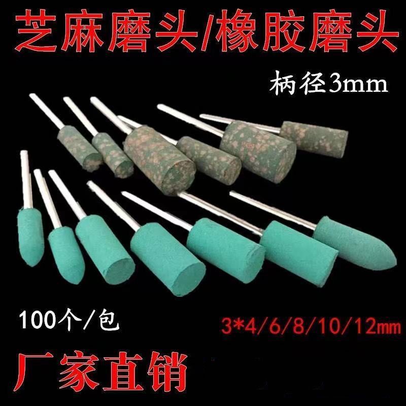 sesame grinding head rubber grinding head sponge grinding head rubber grinding wheel metal grinding and polishing rust removal grinding head handle 3 mm rubber-cylindrical 3 x4mm+10only installed