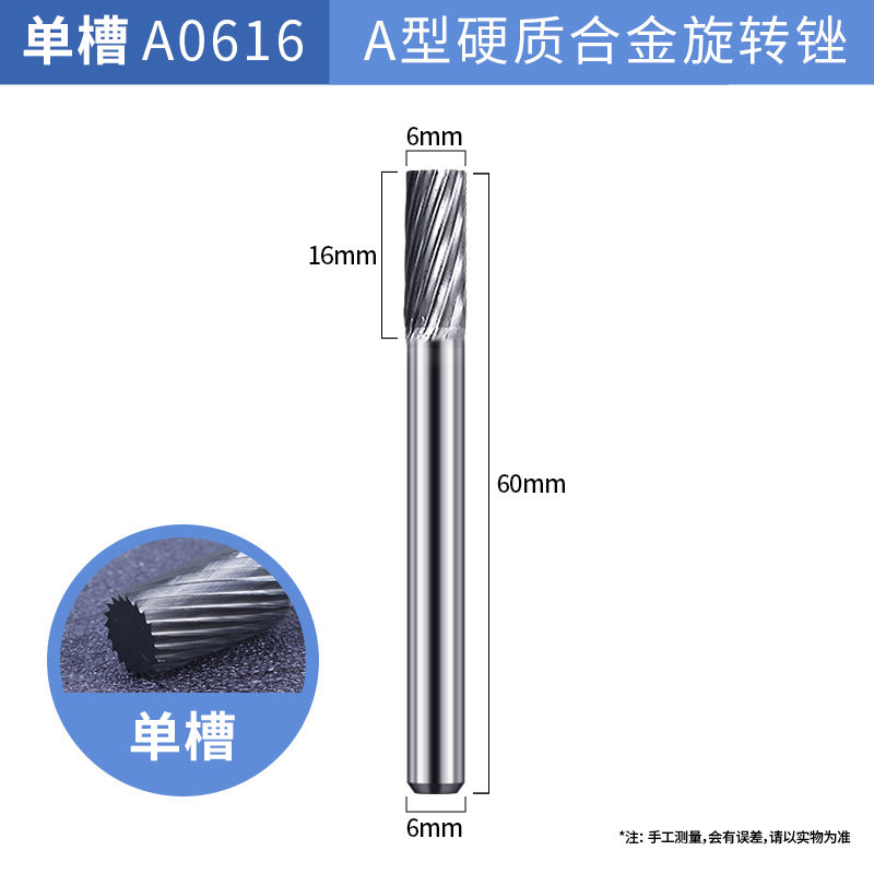 carbide rotary file metal polishing electric file woodworking stainless steel hole expansion inner grinding head A cylindrical A0616 single slot