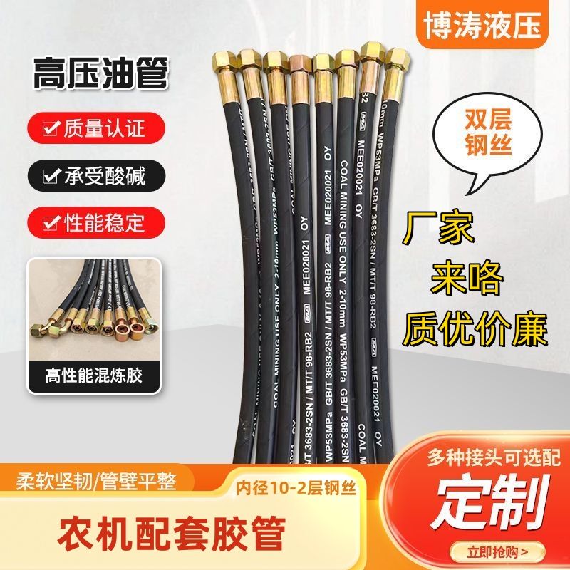 high-pressure oil pipe two-layer steel wire hydraulic oil pipe tractor oil cylinder modified agricultural machinery agricultural vehicle oil pump high-pressure hose two ends 18 straight female +0.5rice