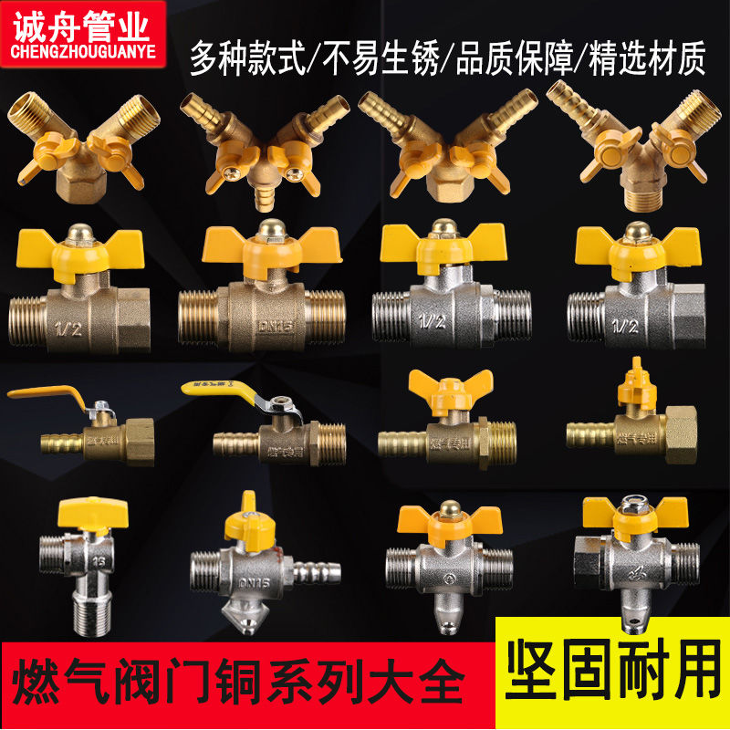 brass gas valve 4 points 6 points gas three-way valve gas valve natural gas switch water heater full copper valve 4 points inner wire disc handle sharp mouth gas valve