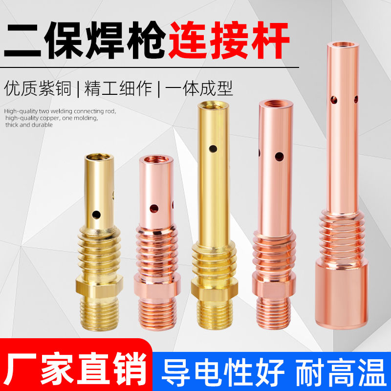 500A two-protection welding gun connecting rod 200 a350A copper thickened connecting rod outer wire conductive nozzle seat two welding accessories brass 200 A external thread connecting rod 5 pieces