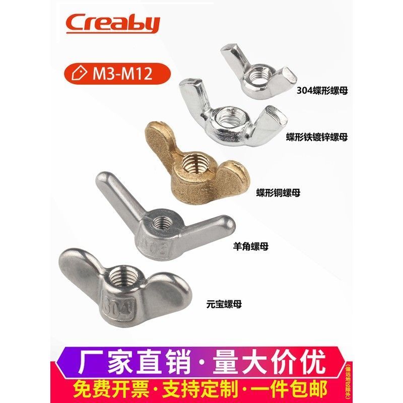 304stainless steel butterfly nut butterfly type horn nut hand-tightened ingot screw nut M3M4M5M6M8M10 the following specifications are stainless steel