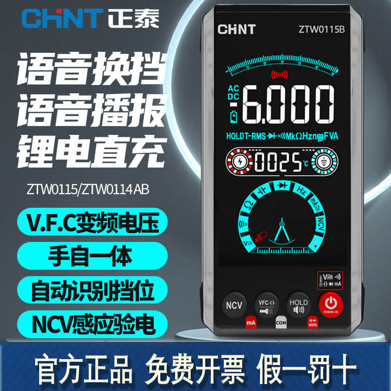chint multimeter digital high-precision fully automatic intelligent anti-burning rechargeable voice electrician special multimeter 115 B voice control [package 3] watch case +table package