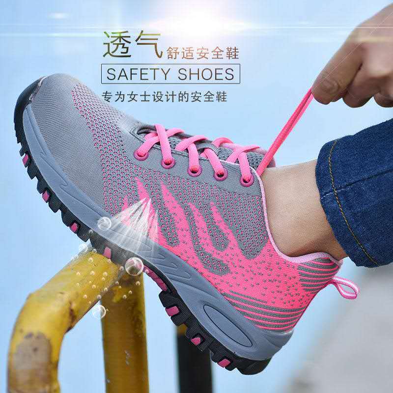 labor protection shoes for women, steel toe caps, anti-smash and anti-puncture, summer fashion, breathable, deodorizing, lightweight, cowhide sole, wear-resistant work shoes 203 pink flying weave - anti-smash and anti-puncture +34