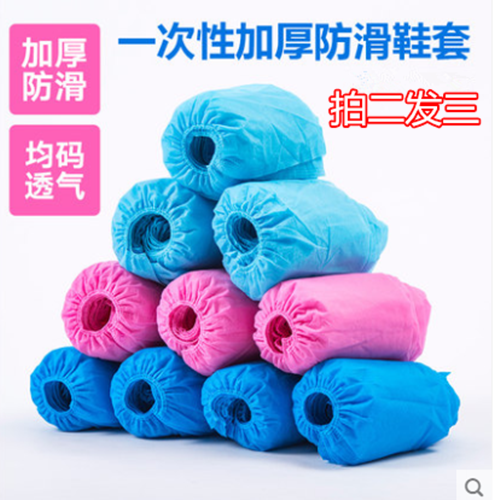 disposable shoe covers, thickened, waterproof, wear-resistant, non-slip, room student, adult hospitality plastic foot covers, plastic thickened [blue 100 pieces]