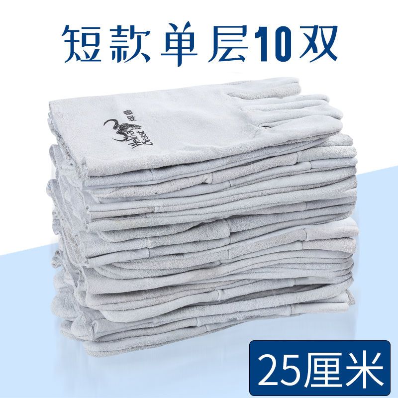 10double welding beast electric welding gloves cowhide anti-scalding welder gloves reinforced wear-resistant soft lengthened protective labor protection short single layer 25 cm 10 pairs 001