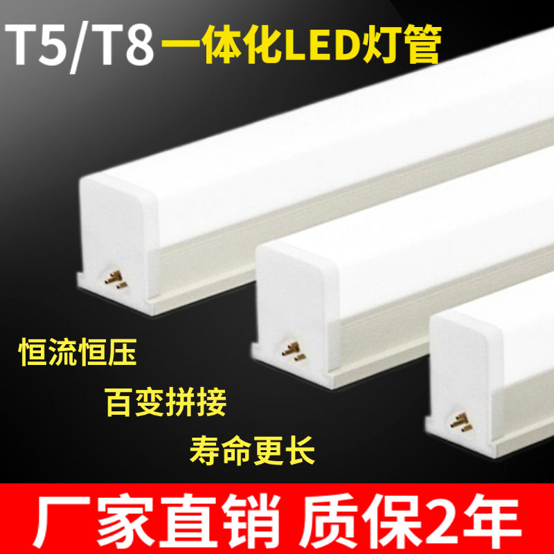 T5T8 integration led lamp tube light cabinet long strip 1.2rice living room hidden light supermarket workshop factory energy-saving lamp T5 integration 1.2rice /20watt high brightness +white light 5 pieces