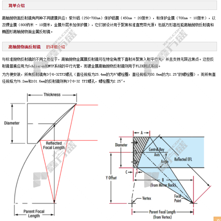 Off-axis parabolic mirror Vilsek optics unspecified specifications