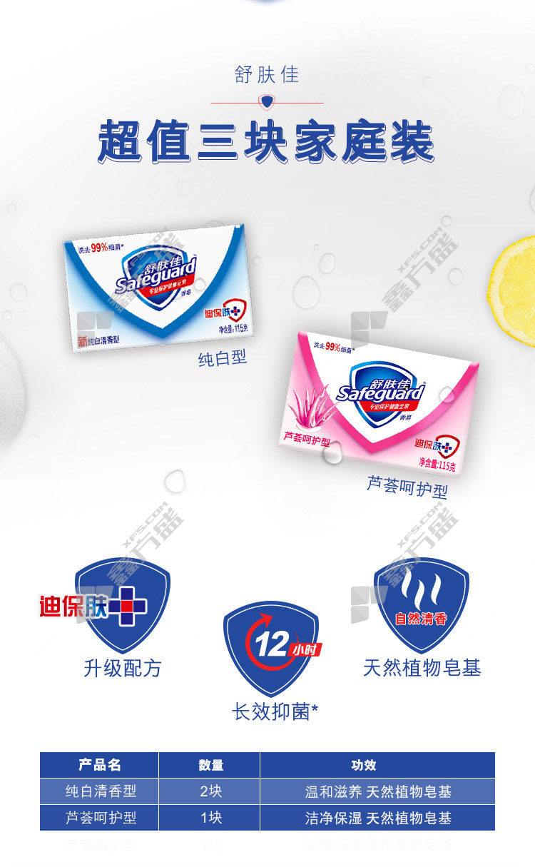 safeguard triple bar soap pure white 115 g*2+aloe 115 g*1 no specifications