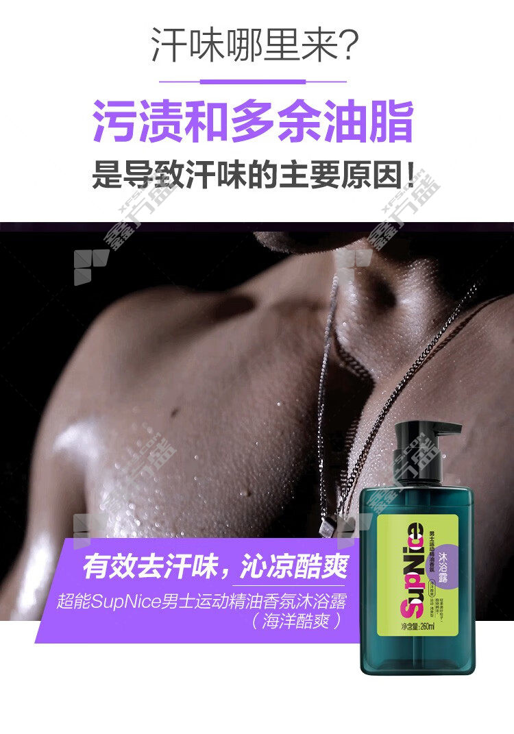 super power supnice men's sports essential oil fragrance shower gel (vitality and freshness )260ml (ocean cool )600ml