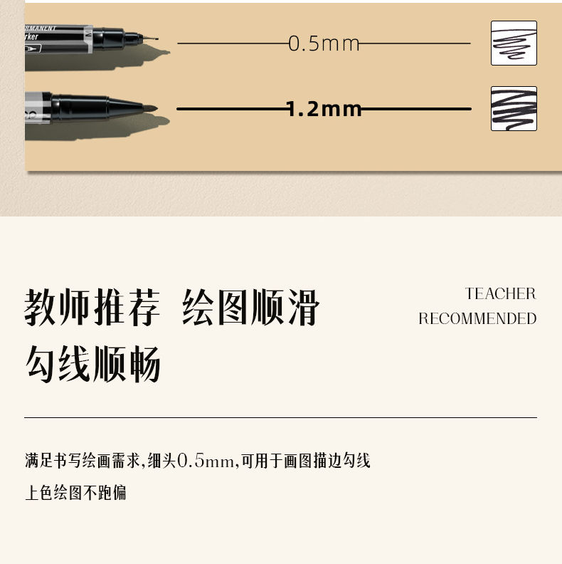 deli double-headed marker pen, one thick and one thin, art hook pen, oily, quick-drying, non-fading, black, waterproof wholesale [2 black aerospace theme] double-headed