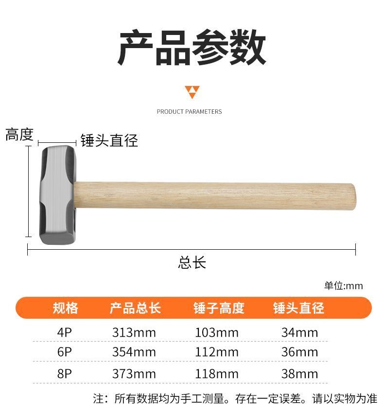 heavy-duty octagonal hammer square head wall smashing and demolition hammer wooden handle multi-function masonry iron hammer construction site with lang head tool quenching and hardening [45# high carbon steel] turn around compensation +grab - sledgehammer (4 P)(about 1.8 catties)