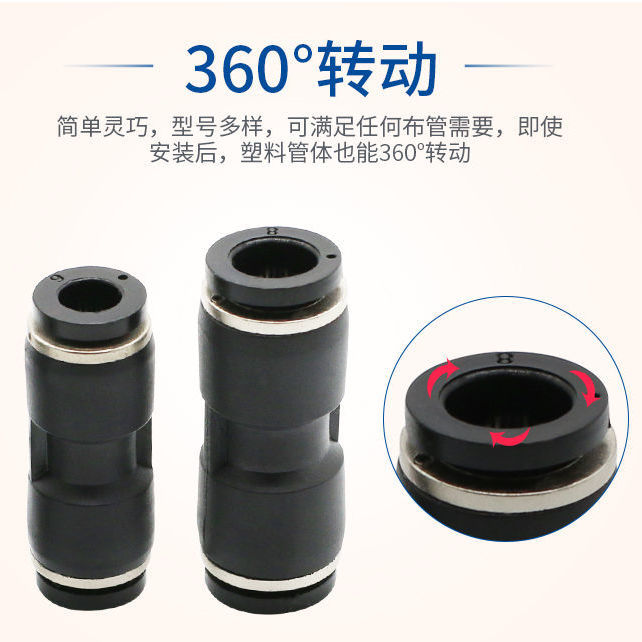 tracheal quick-insert boutique PU directdocking PG reducer black plastic quick connector PU4-6-8-1012PU-04 direct