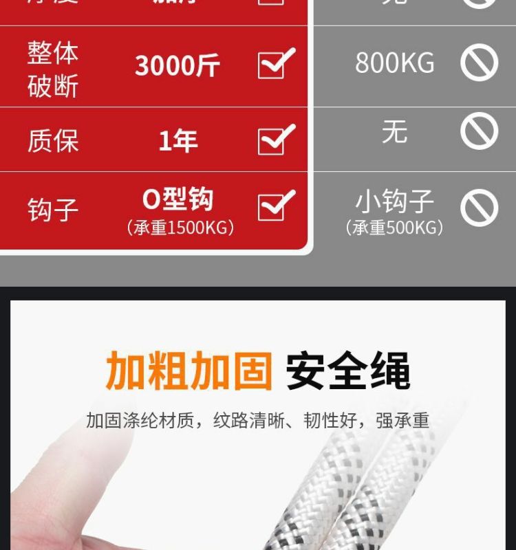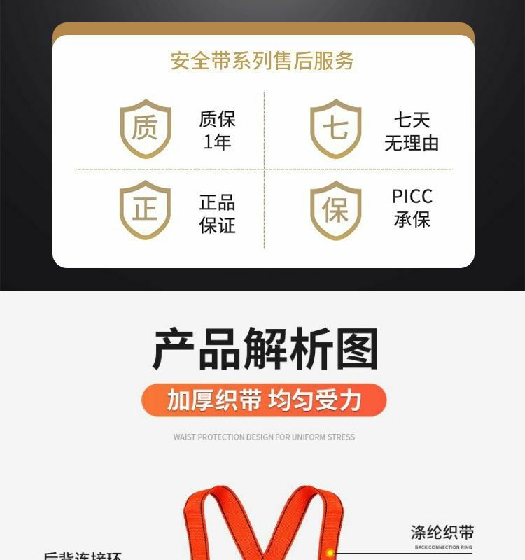 安全带收到了,材质挂钩厚实耐用,做工精细,安全绳好粗,穿戴方便,有需要的可以下单。