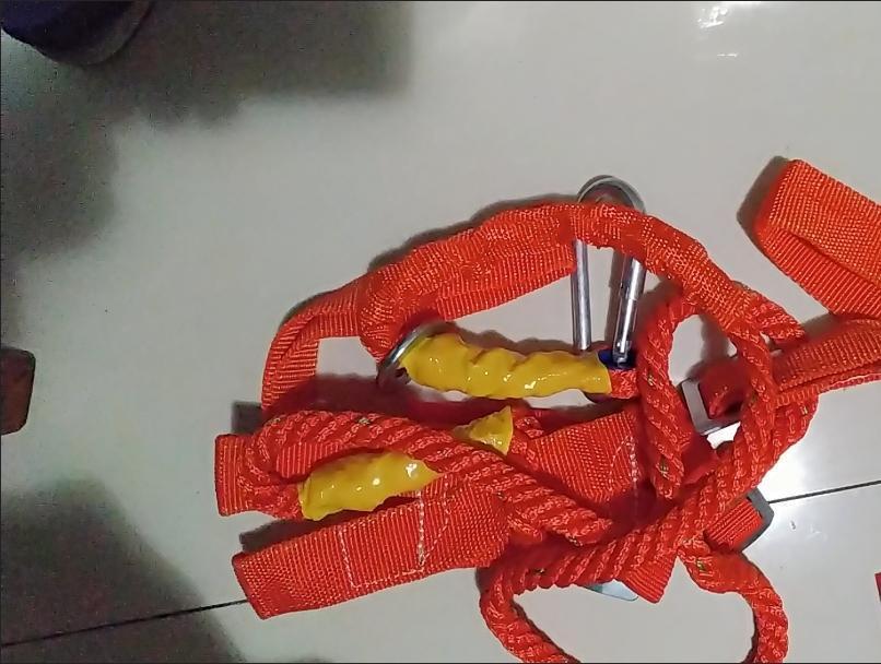 门口有两棵树。正好在树中间。安全绳一到。我打开一看,真粗。真结实,跟户外的攀岩绳有一拼。虽然多年不攀岩了,谢谢,良心商家