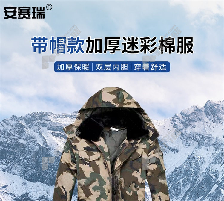 ansery 25547 thickened camouflage cotton jacket with hood 25547 camouflage green 180 yards no specifications