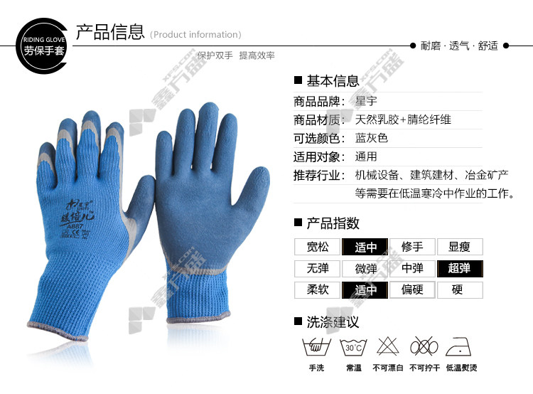 xingyu XINGYU A887 warm gloves A887 7 needle 6-strand blue terry gray blue spray salt frosted thumb full immersion no specifications