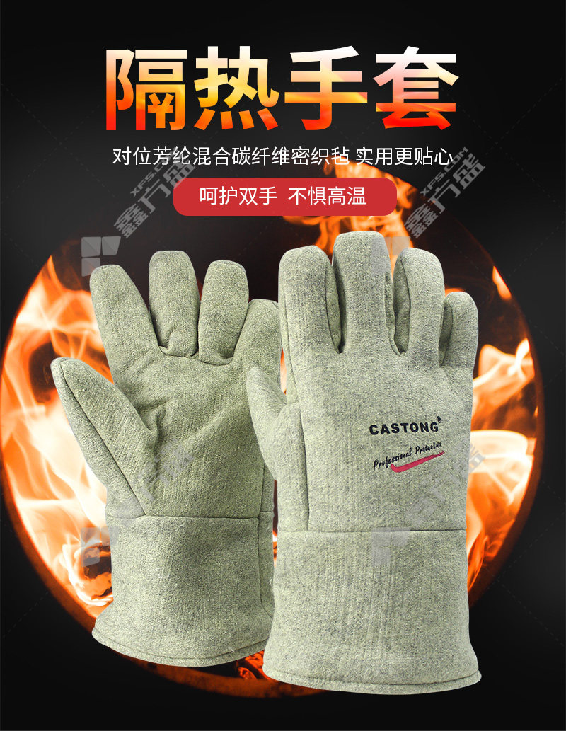 caston 500-degree high temperature resistance, wear resistance, heat insulation, fire protection, thickened five-finger flexible gloves green GEEE15-34 34cm no specifications
