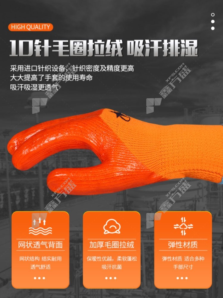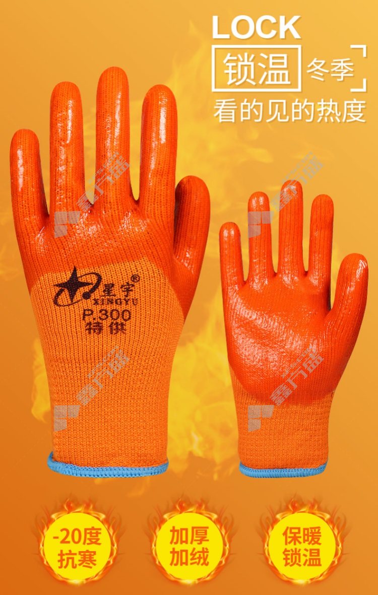 xingyu plus fleece thickened wear-resistant work terry warm foam PVC cold-proof gloves P300 L code orange red no specification