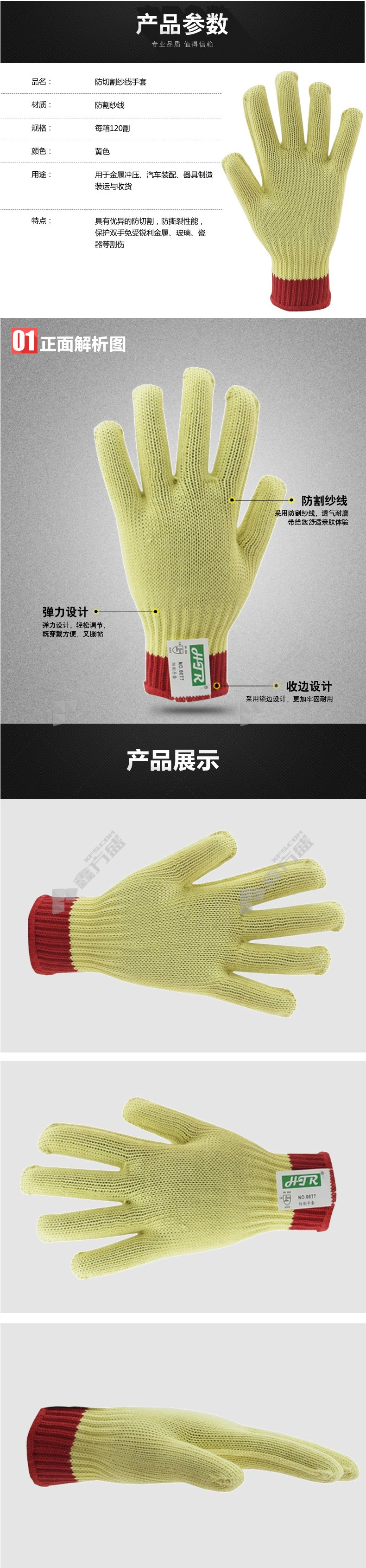 haitail 7-pin imported aramid anti-cut gloves 0077 M yellow no specification