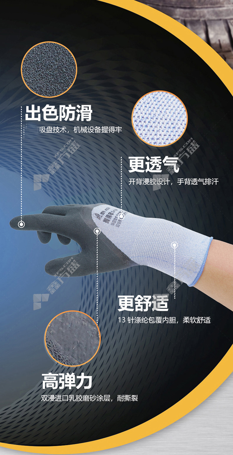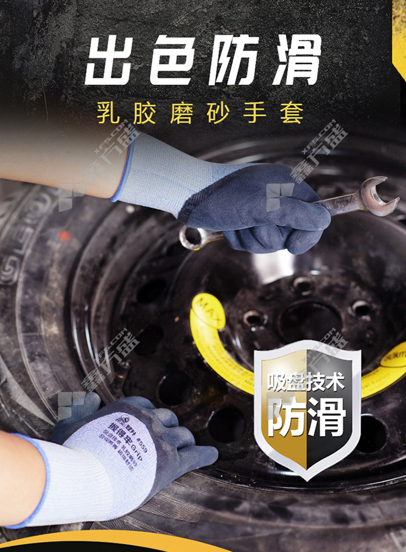 deng sheng firm grip plastic yarn gloves #559 no. 8 white and blue yarn gray and blue glue no specifications