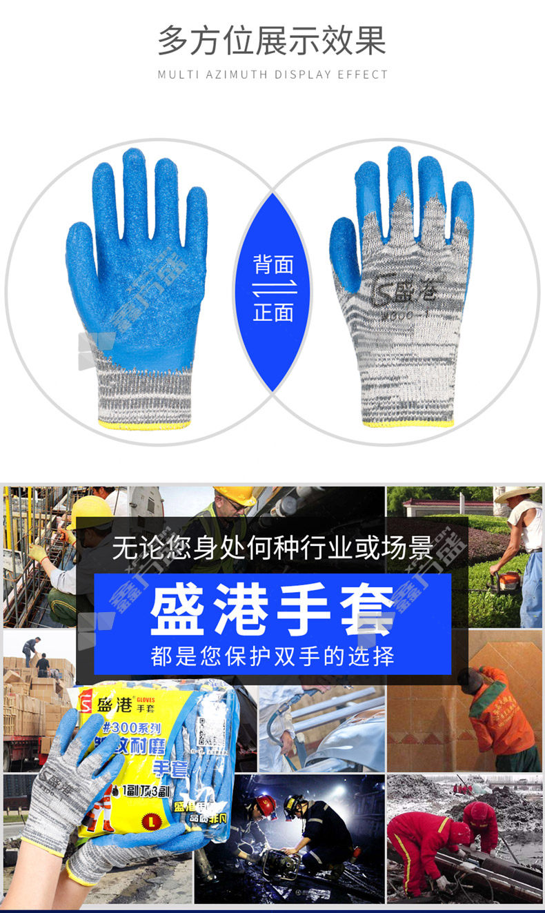 sengkang 300#-1 yarn wrinkle gloves one size black gray yarn blue coating no specifications