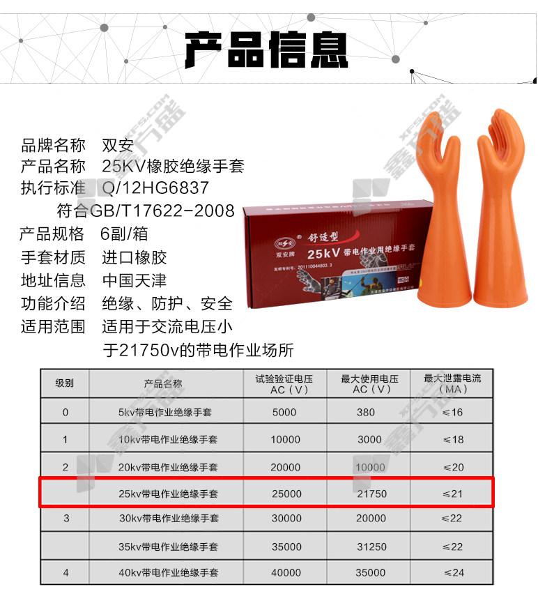 shuangan 25 KV insulated gloves 25 KV reddish brown 41 ±1cm no specifications