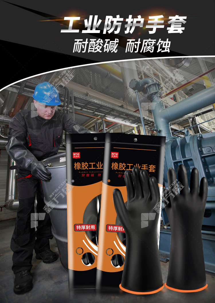 ameishang acid and alkali resistant thickened rubber industrial gloves A5392 45CM black A5392/45CM/black