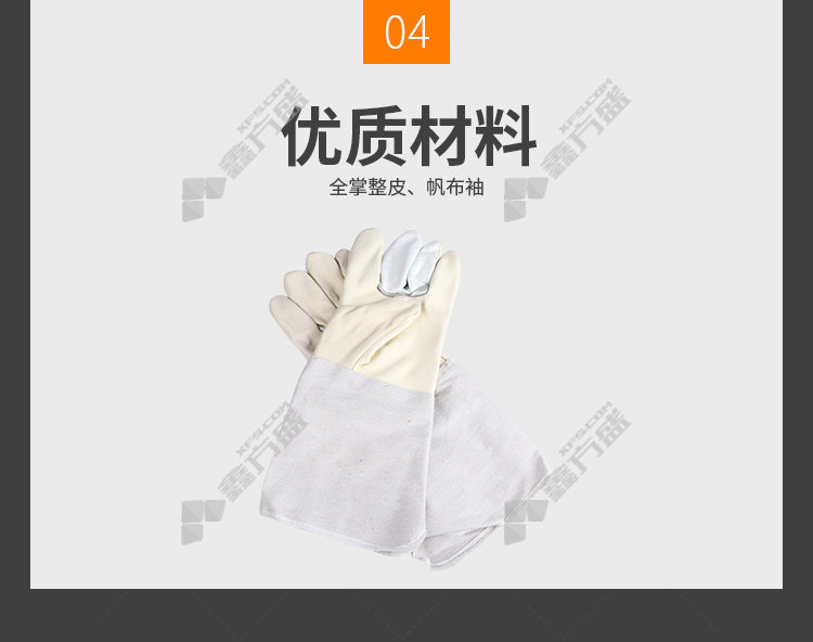 xintopang full leather gloves, one-size-fits-all, white gray, full-length leather, canvas sleeves, no specifications