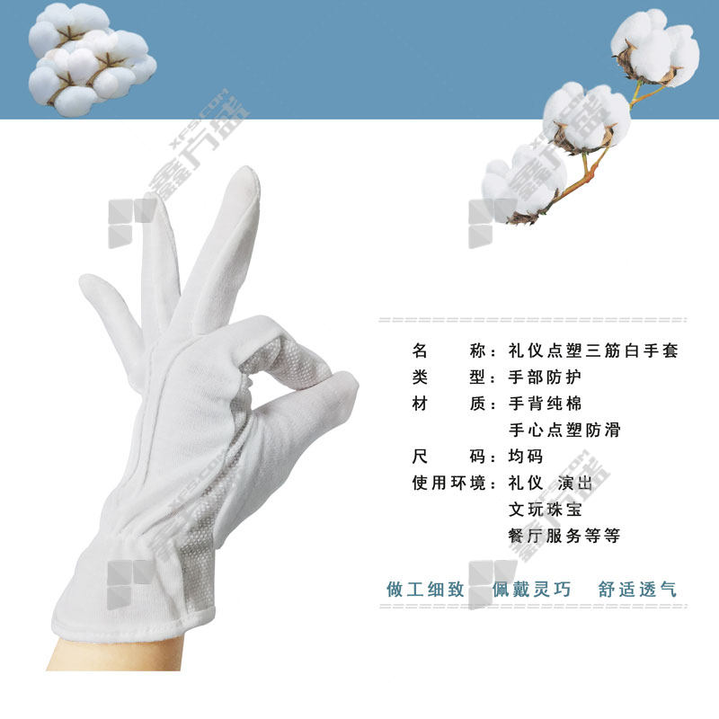 tianyizhou 10 pairs of ceremonial three-rib cotton white dot plastic gloves TYZ-LYST02 one size fits all white no specifications