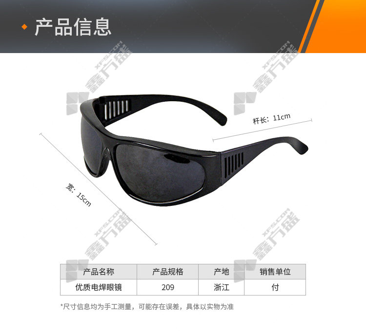0116 high quality welding glasses 209 one size fits all black no specifications
