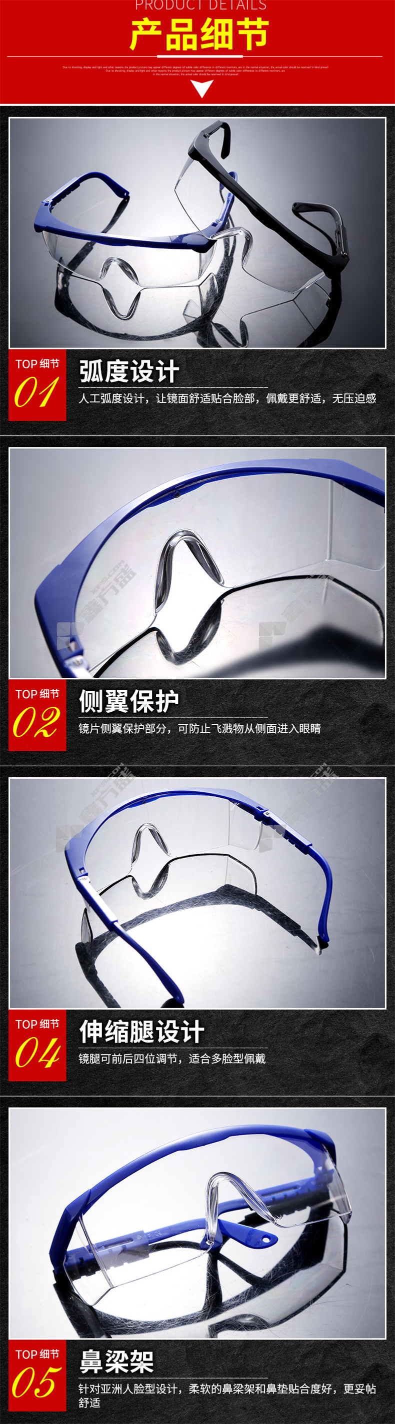 jiahu anti-impact, anti-scratch, anti-fog goggles 01461 black frame white film 0105 /blue frame white film