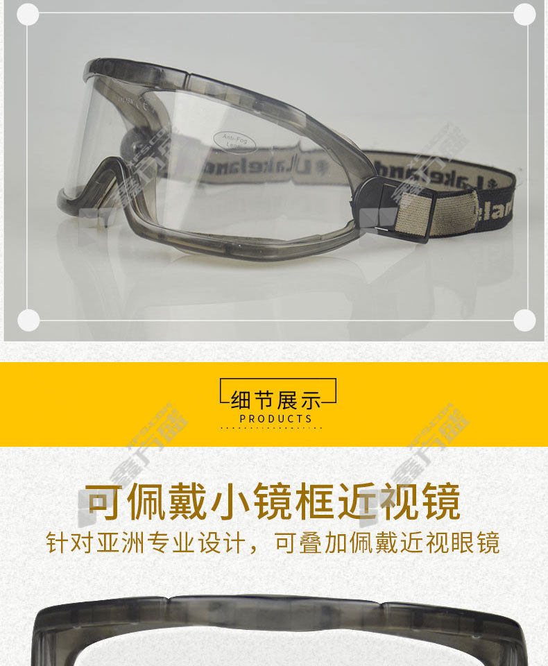 lakeland G1580 anti-fog, anti-scratch and anti-impact goggles, knitted headwear, smoky gray frame, no specs