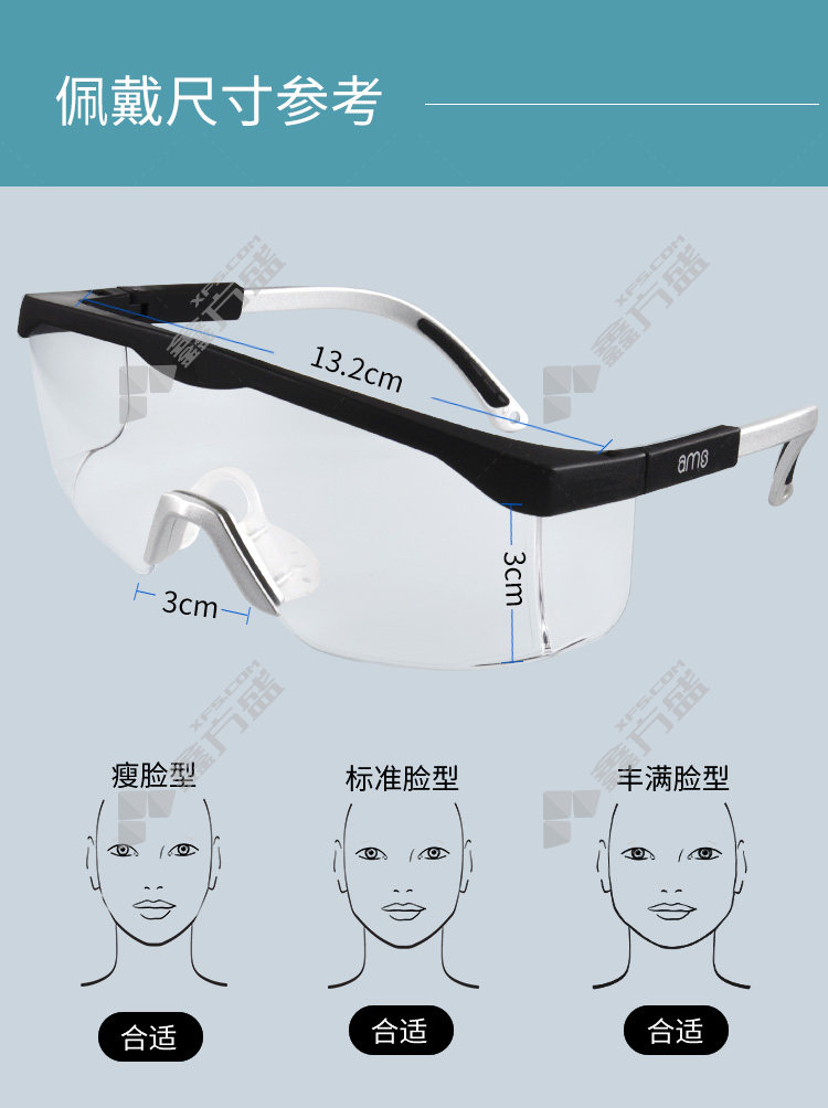 anmeishang anti-fog and anti-scratch safety glasses with nose bridge pad A2501 no specifications