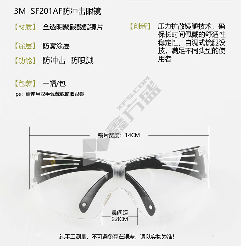 3M protective glasses SF201AF ultra-light and comfortable transparent protective glasses anti-fog no specifications