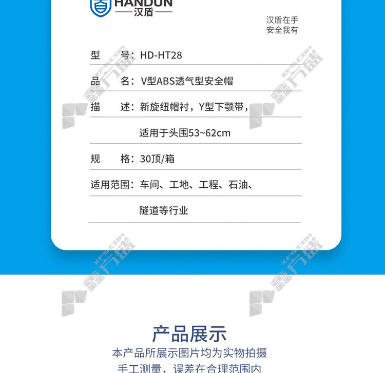 han dun HD-HT28 V type ABS breathable type hard hat blue white