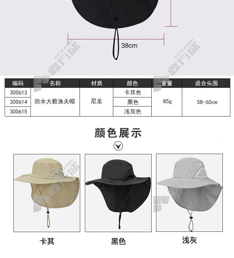 ansery waterproof large brim fisherman hat suitable for head circumference 58-60 cm khaki 300613 suitable for head circumference 58-60 cm khaki /300613