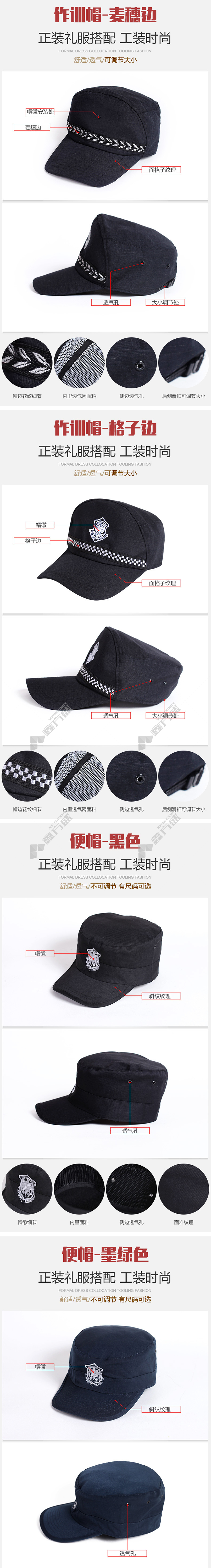 Duckbill grid security guard duty training cap, cotton, one size, black, no specification