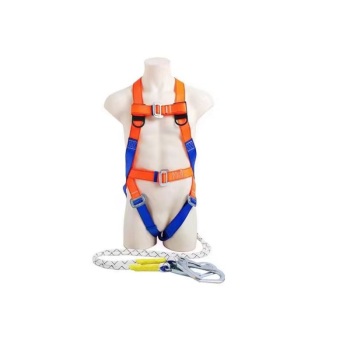 Full-body double lanyard safety harness with two-meter rope, red and blue, unspecified size.