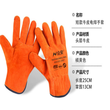 zhongan leather gloves cowhide short welding gloves color no specifications