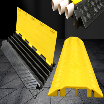 Rubber enhanced three-line road speed bump with no specifications.