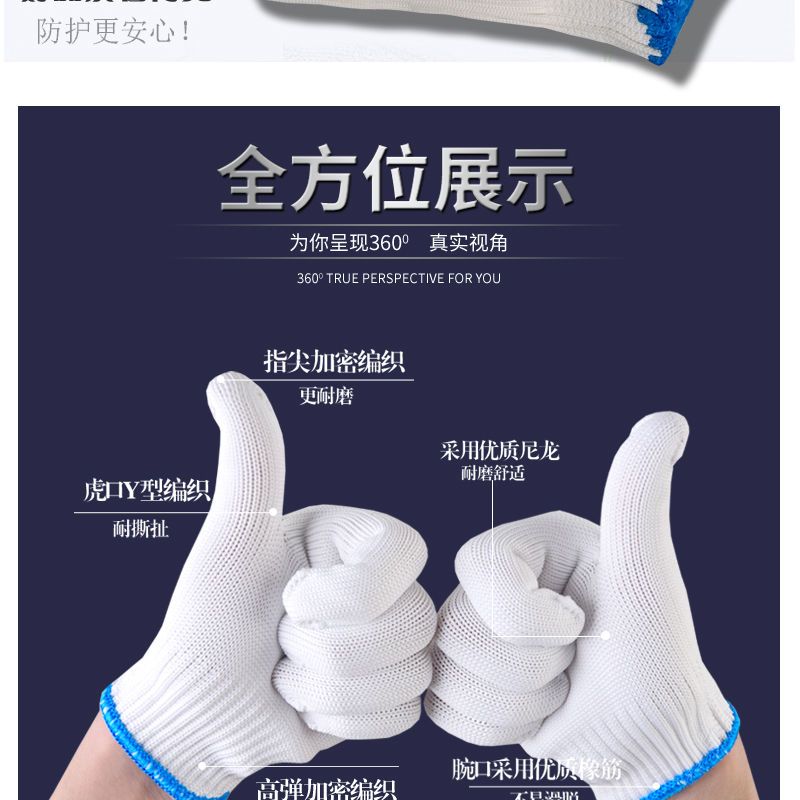 尼龙手套收到好几天了,手套材质很好,做工也很精细,戴上很舒适,以前买的带胶手套磨手,棉线的又不耐磨,这个确实不错